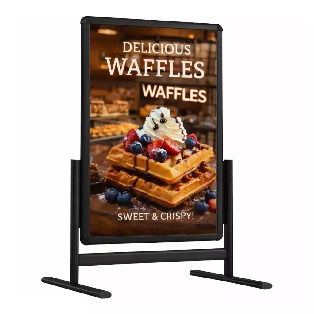 Bu çift taraflı pano, her iki yüzünde de görsellerinizi sunarak maksimum görünürlük sağlar.